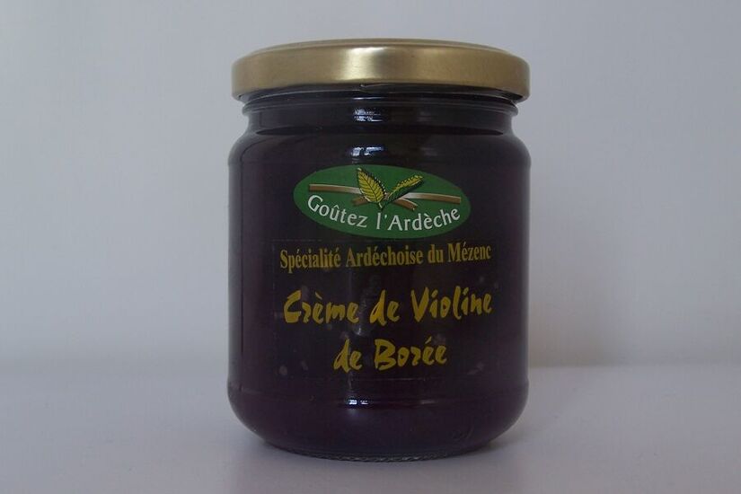 Ingrédients : pomme de terre, sucre, épices, agrumes, 55 g de pomme de terre pour 100 g . Teneur totale en sucre : 60 g pour 100 g. Comment consommer la Crème de Violine de Borée ? Salé/Sucré : Servi avec les gibiers une noix de Crème de Violine sur chèvre frais, chaud, brebis, Cantal, Roquefort... Une noix également sur du foie gras et ses dérivés.
