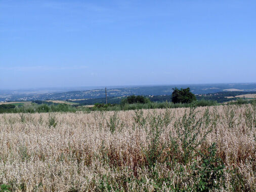 - Dans le bois, restez sur le sentier principal aux différentes intersections, puis descendez le long d’un champ offrant de belles vues sur les Alpes, Vienne et Lyon. Vous rejoignez une route à la Croix du Pont.