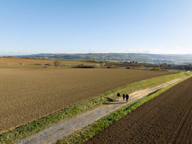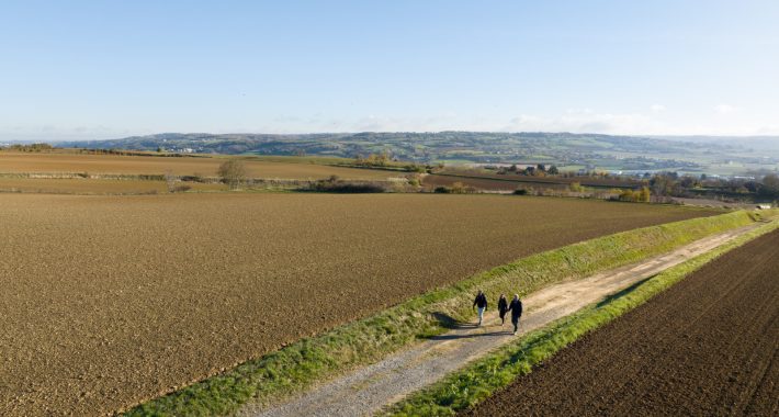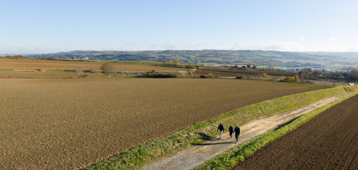 - Après une courte portion goudronnée, suivre la piste à travers champs, puis en lisière de bois.