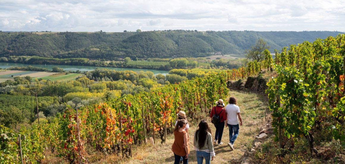 Partez pour une balade au cœur des prestigieux vignobles de Côte-Rôtie, avec en toile de fond les panoramas grandioses offerts par le Rhône majestueux.