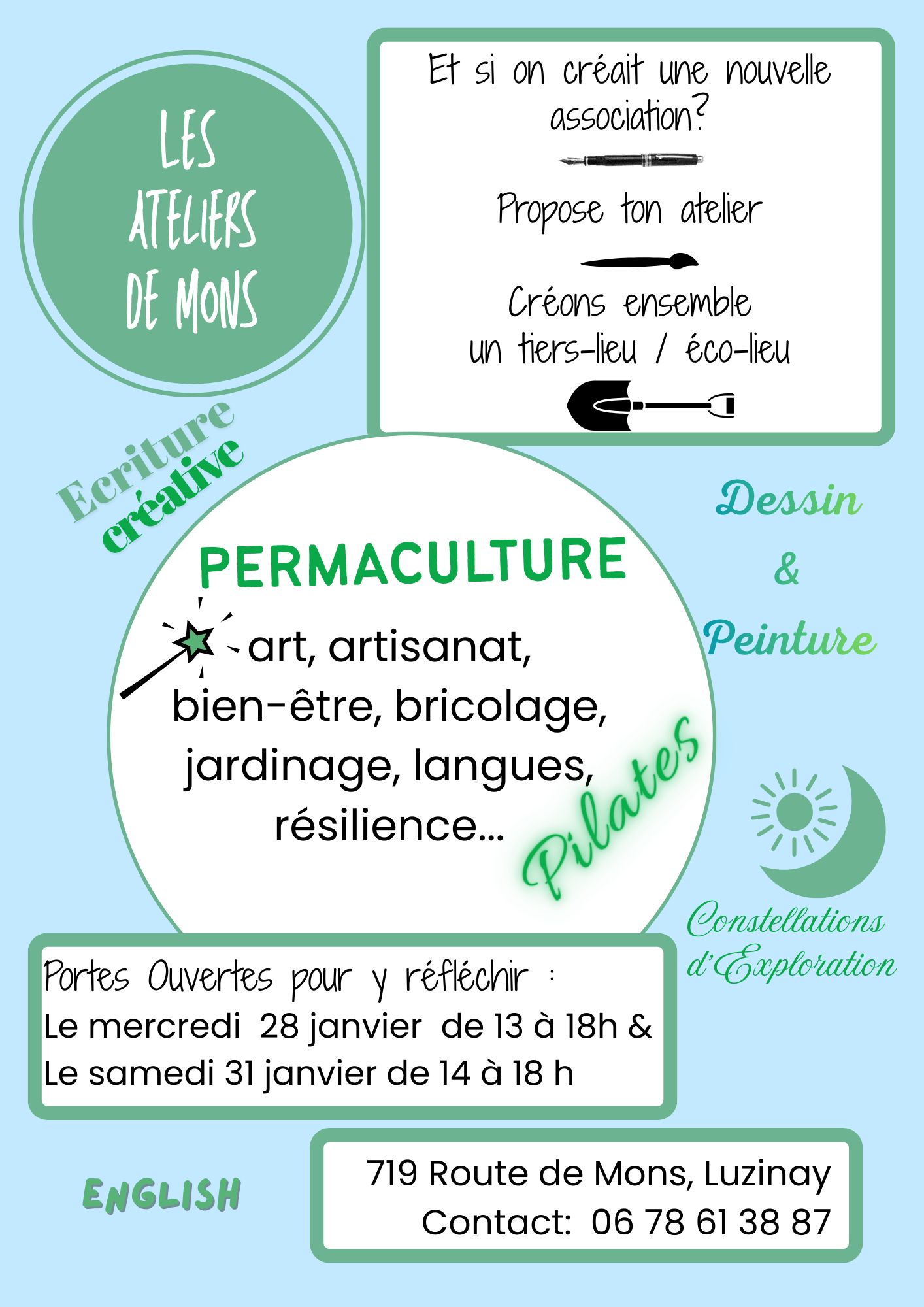 De manière plus ponctuelle, des ateliers de langues, d’écriture créative ou autour d’autres thématiques choisies collectivement pourront également voir le jour.