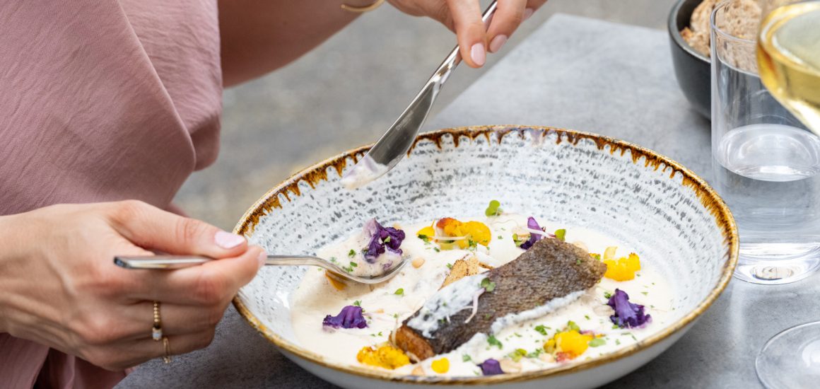 Pour continuer ce voyage gustatif, l'Alquimia vous fait (re)découvrir son entrée qui avait marqué les papilles lors de la ViaGusta 2021 : "Saint-Jacques servies en deux temps, passion et cardons".