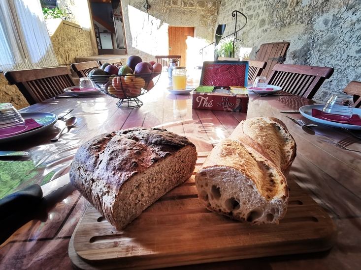 Toutes nos repas sont fait maison avec des produits frais et locaux. Les déchets sont triés, les restes organiques amenés dans notre compost pour le bonheur de nos poules qui nous produisent des bons œufs fermiers.