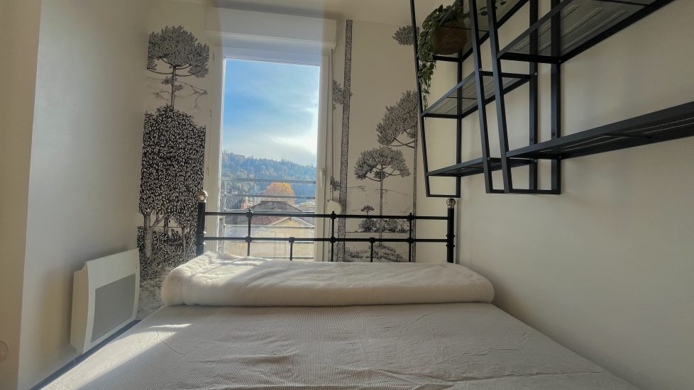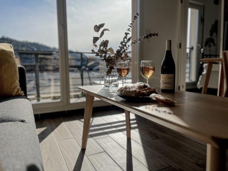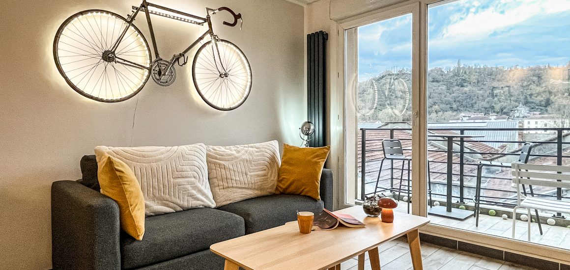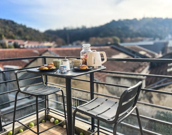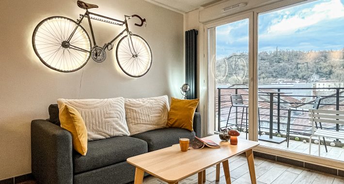 Un grand balcon vous accueillera pour une pause détente au soleil. Vue panoramique sur la Bâtie de Vienne.