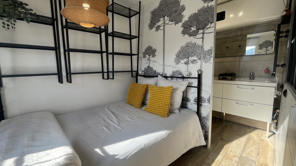 Un canapé convertible en lit 2 places (140x200 avec un vrai matelas) est dispo dans le salon pour accueillir deux voyageurs supplémentaires.