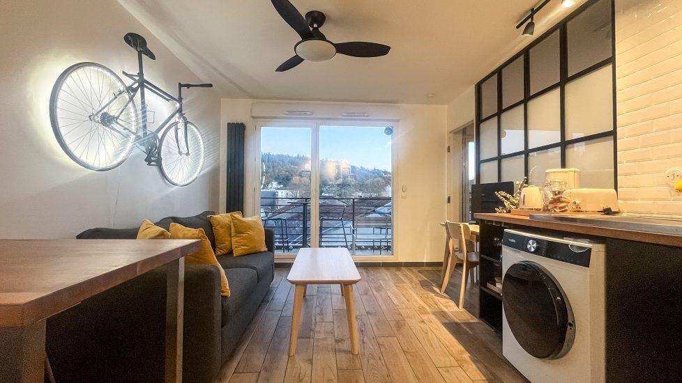L'appartement Au Petit Vélo est l'endroit parfait pour une halte touristique à 2, 3 ou à 4 mais aussi un espace de espace de travail fonctionnel pour un travailleur en déplacement. Profitez du balcon et de la vue dégagée sur la Bâtie et les collines.