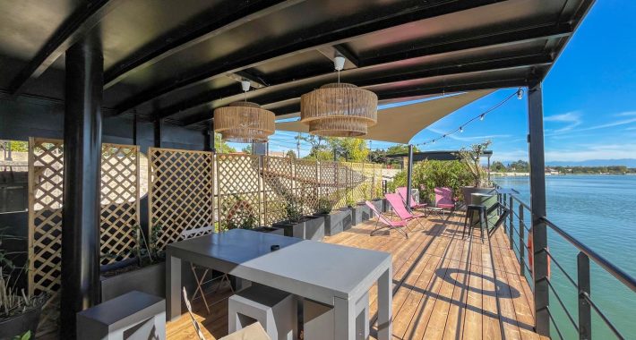 Vivez une expérience inédite en dormant sur l'eau ! Composé de deux gîtes avec entrées indépendantes, vous profiterez de deux terrasses spacieuses de 40m² et 30m², sans vis-à-vis, offrant une vue spectaculaire sur le Rhône et ses alentours.