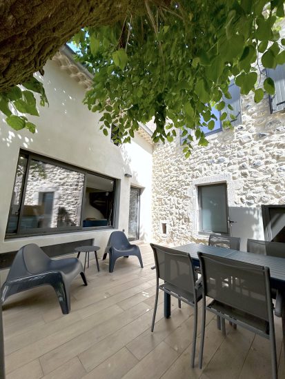 Gîte 5 étoiles 90m2 climatisé avec terrasse privative proche rivière Ardèche. Sur place: piscine privée du Clos, terrain de pétanque et possibilité de massages bien-être. Label Accueil Vélo.