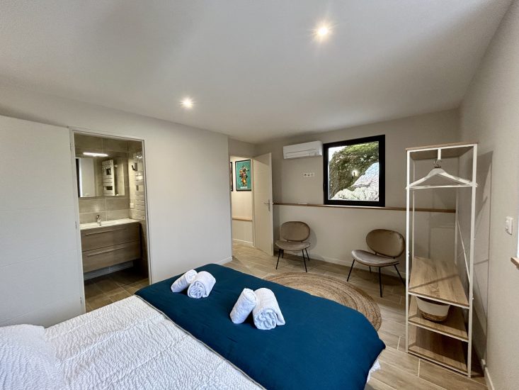 1 chambre avec 1 lit 160x200 et sa salle de douche privative
