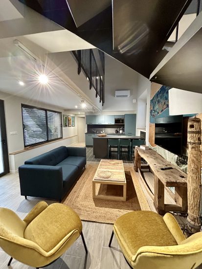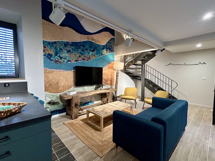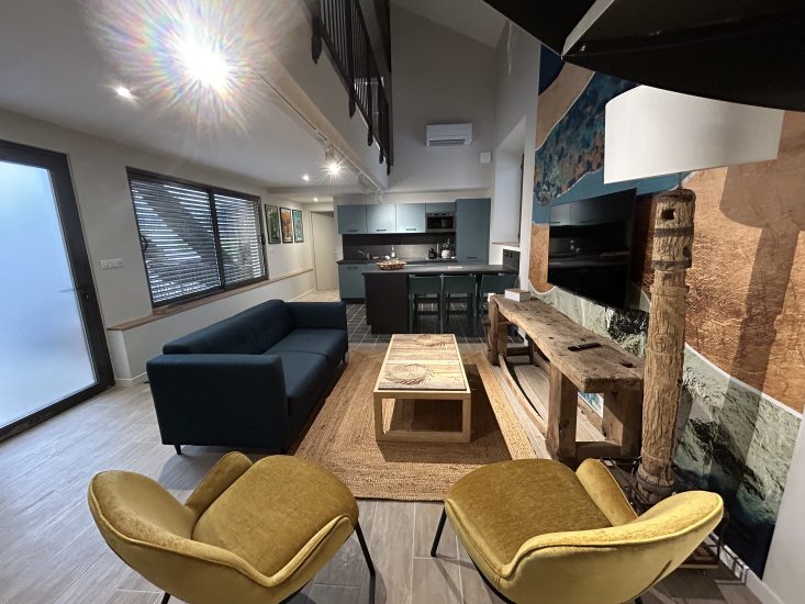 Le Gîte Evasion est un duplex de 90 m2 classé 5 étoiles. Il est idéal pour un séjour en famille ou entre amis avec sa grande pièce de vie, ses 2 chambres indépendantes et son coin « montagne »: