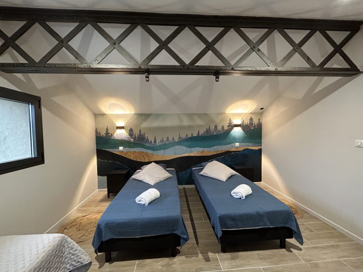 Le coin « montagne » ouvert sur la pièce de vie avec 2 lits d’appoints (2 personnes)