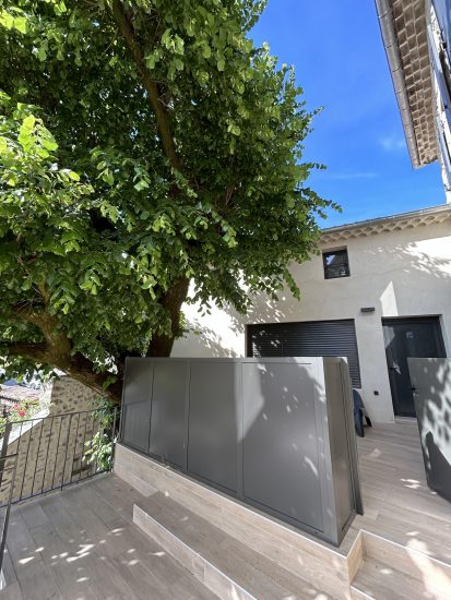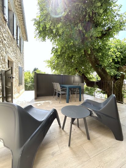 Le gîte dispose aussi d’une grande terrasse privative d’environ 16M2 avec vue sur le jardin et à l’ombre du tilleul centenaire du clos.