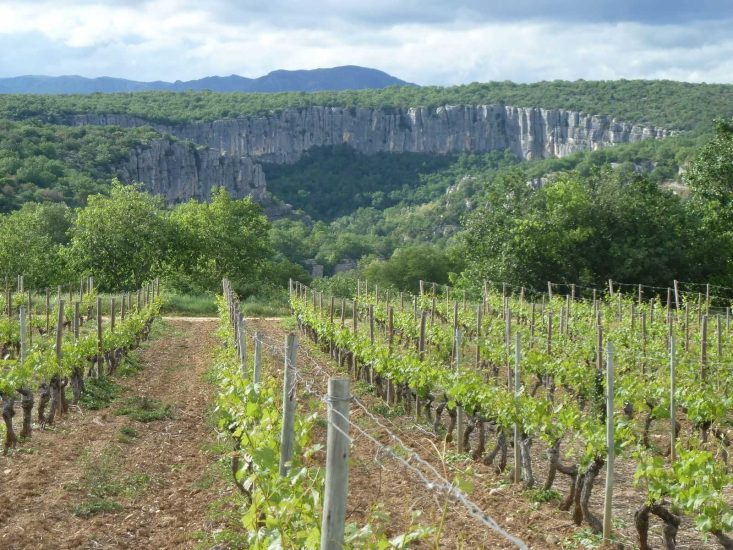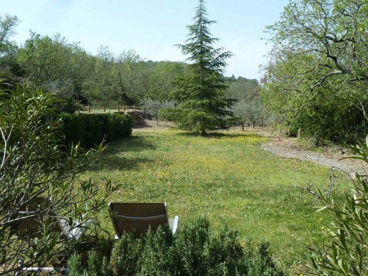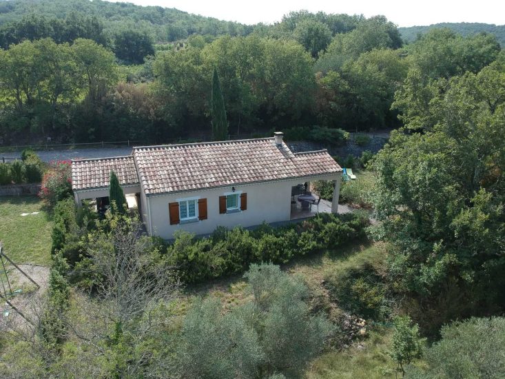 Maison indépendante de grand confort, légèrement en hauteur, au pied d'une colline de chênes et de buis, avec vue imprenable sur le cirque de Gens (Falaises surplombant l'Ardèche).