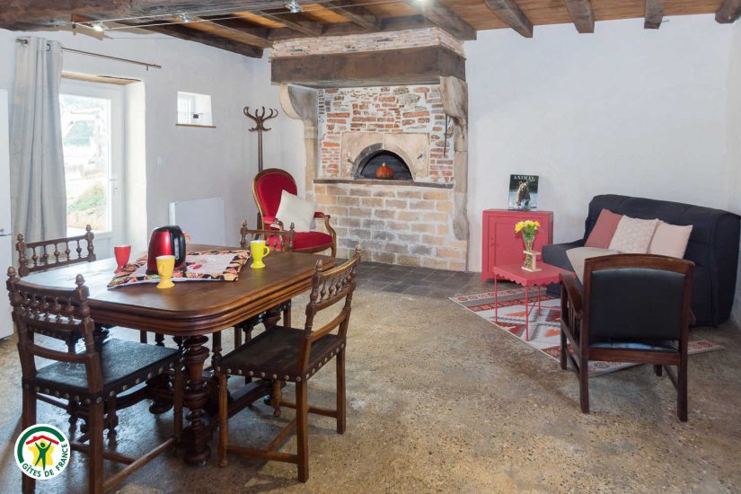 Vous disposerez au rez-de-chaussée d’un vaste séjour-cuisine avec coin salon (avec four à pain intégré !) ainsi que d’une salle d’eau et WC indépendant