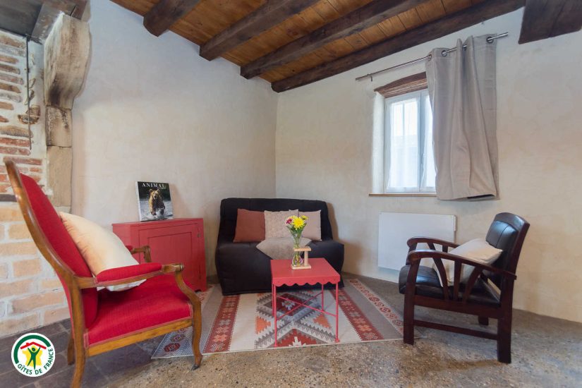 A l’étage, 1 chambre avec lit double et une autre avec 3 lits individuels font de ce gîte de charme un lieu idéal pour les familles.