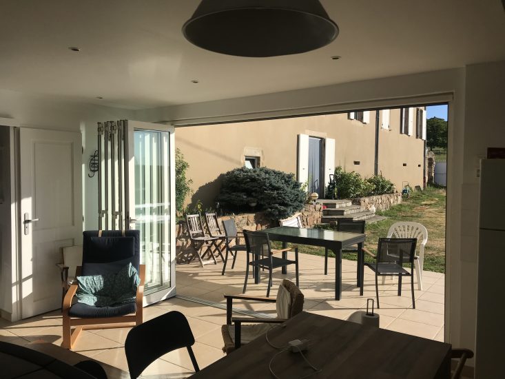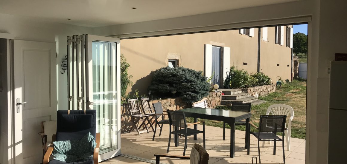 Un lever de soleil au bord de la piscine, un plongeon matinal pour commencer la journée, Chardonnay offre une autonomie à ses hôtes dans un cadre idyllique. La grande terrasse ombragée par le store banne et les plantations donne, à la belle saison, un espace de vie supplémentaire à ce gîte refait à neuf de 50 m2, réparti sur deux niveaux. A l’étage : deux chambres de 10 et 12 m2. La première dispose d’un lit double et la seconde d’un lit de double et de deux lits superposés. Au rez-de-chaussée : une cuisine équipée, un coin repas et un salon, ainsi qu’une salle de bain et un WC indépendant. Le gîte dispose d’un lave-vaisselle et d’un lave-linge. Une grande baie vitrée s’ouvrant en « accordéon » sur toute sa largeur donne un accès direct à la terrasse et à la piscine. Ici aussi, la vue est bucolique, offrant sur le village et la vallée du Doux un panorama à 180 degrés sans vis-à-vis.