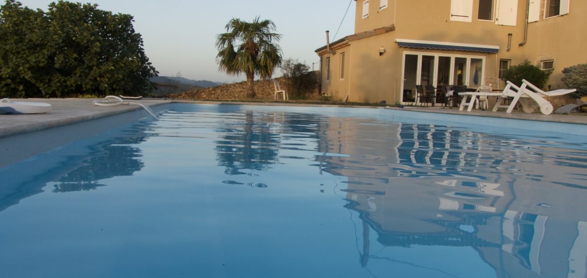 La piscine et sa vue panoramique sur la vallée du Doux,