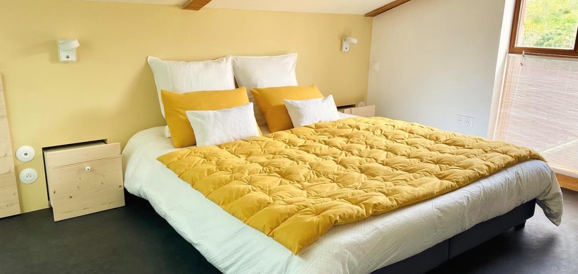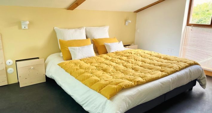 Nous vous proposons une suite de 48m² au sein de notre ferme. Sa construction en terre crue est typique du Dauphiné.