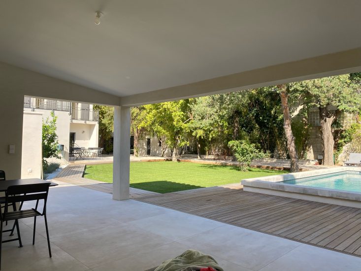 Nos chambres donnent sur le magnifique jardin ombragé, où la grande piscine naturelle et son espace farniente vous raviront les jours d'été.