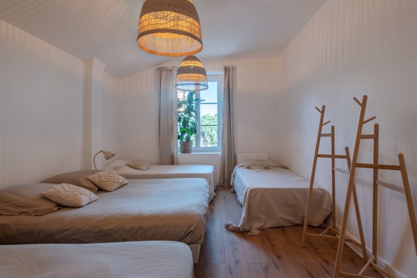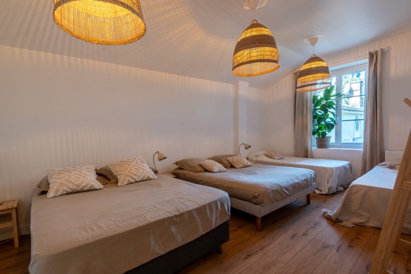 À l'étage, découvrez une suite parentale luxueuse avec dressing et salle de bain attenante, une chambre généreuse pouvant accueillir jusqu'à 3 personnes, une chambre double, une salle cinéma avec deux futons de qualité et une salle de bain indépendante avec WC.