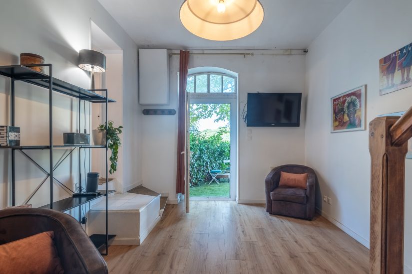 En retrait de la villa, une dépendance avec son pigeonnier offre au rez-de-chaussée une pièce de vie avec canapé convertible donnant sur un jardin privatif, ainsi qu'une cuisine, et à l'étage, deux grandes chambres avec vue sur la salle de bain spacieuse et les WC séparés.