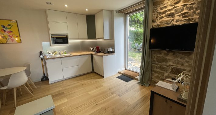 C’est un charmant 2 pièces totalement rénové dans un ancien corps de ferme. L'hébergement est situé dans une annexe de notre maison et dispose d'une entrée privative.