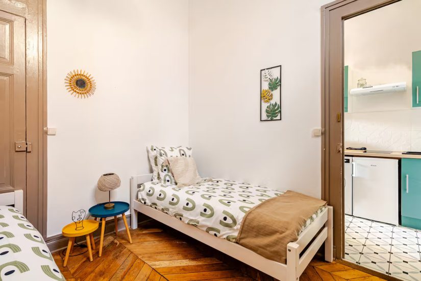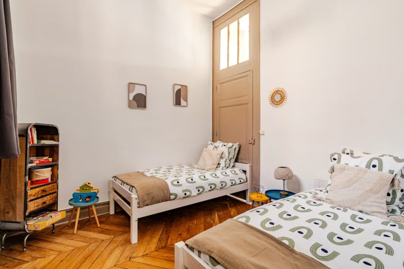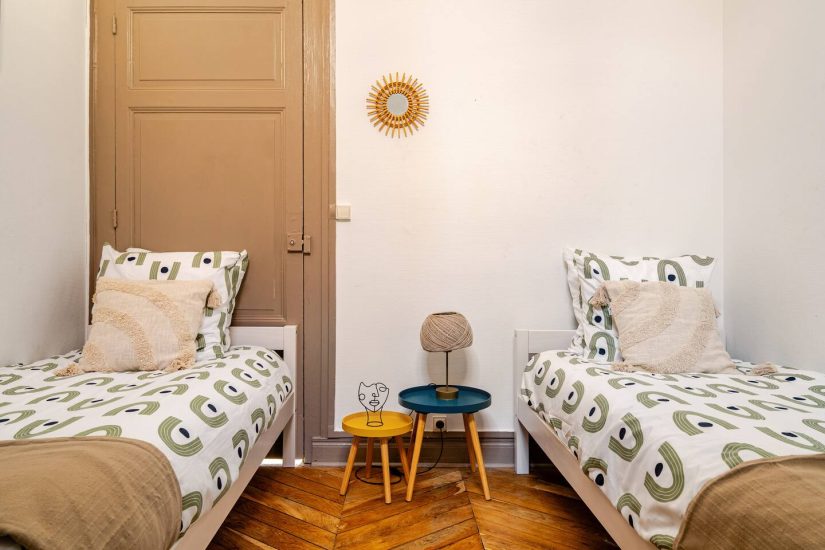 Avec ses deux chambres, dont une avec 2 lits séparés, et un canapé lit, le logement est idéal pour une famille jusqu’à 6 personnes..