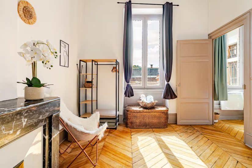 l’Escapade Bohème se situe au 3ème étage d’un ancien couvent et surplombe la place de l’Hôtel de Ville, tout en offrant une belle vue sur Pipet..