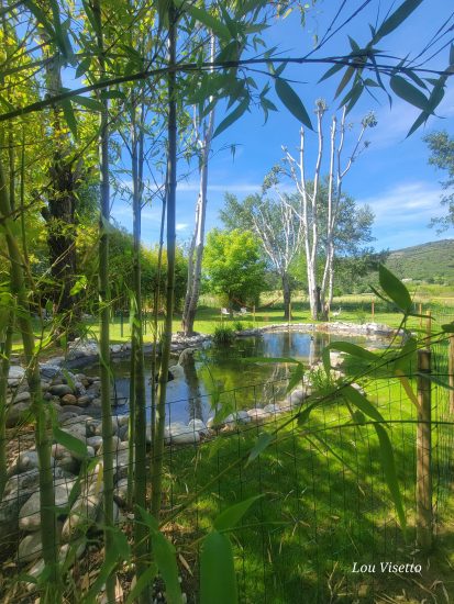 Lou Visetto, bâtie autour de sa tour en galets de rivière, est une propriété de 6 000 m² entièrement clôturée qui respire le calme et la fraîcheur.