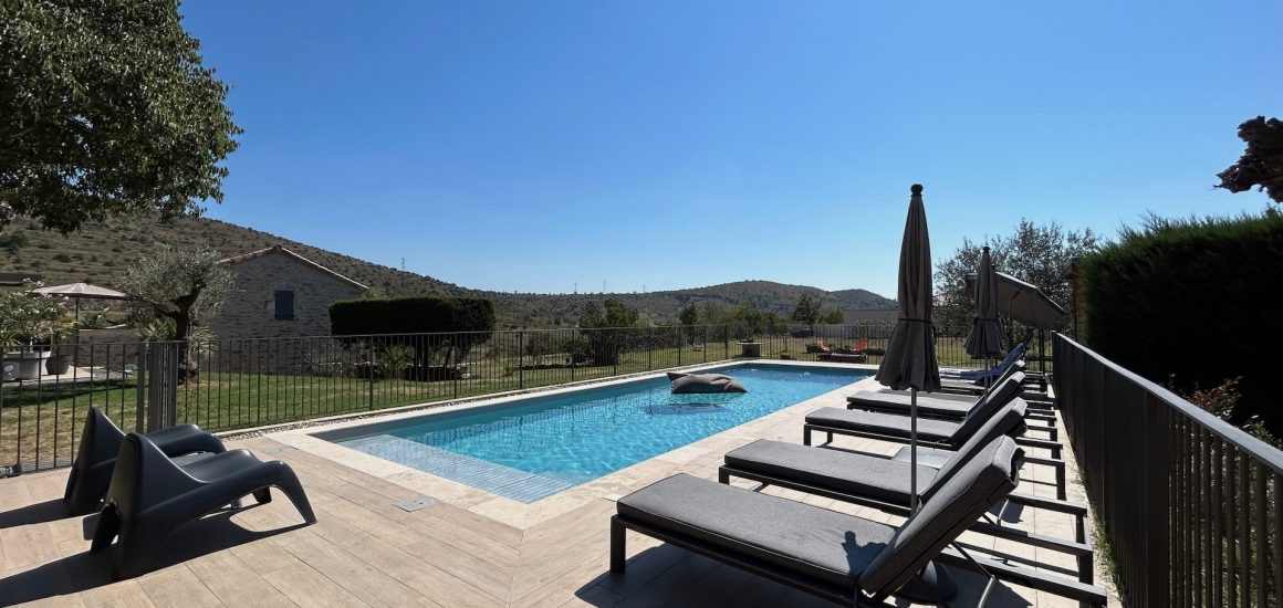 Gîte 5 étoiles 69 m² climatisé dans un Mas Ardéchois entièrement rénové. Sur place : Piscine privée du Mas, terrain de pétanque et accès direct à la Via Ardèche de la propriété.