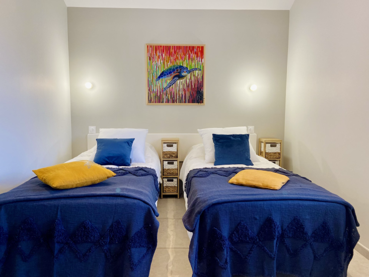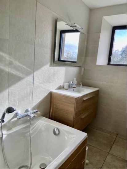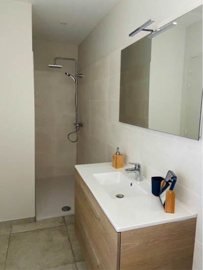 1 chambre avec 2 lits de 90x200 et sa salle de douche & WC privatifs (à l'étage)