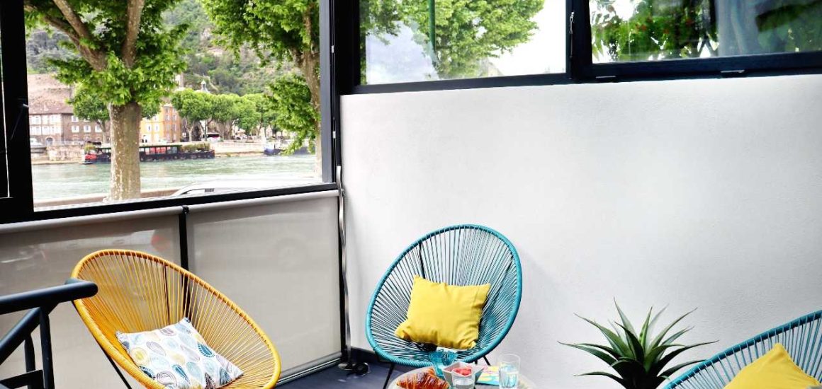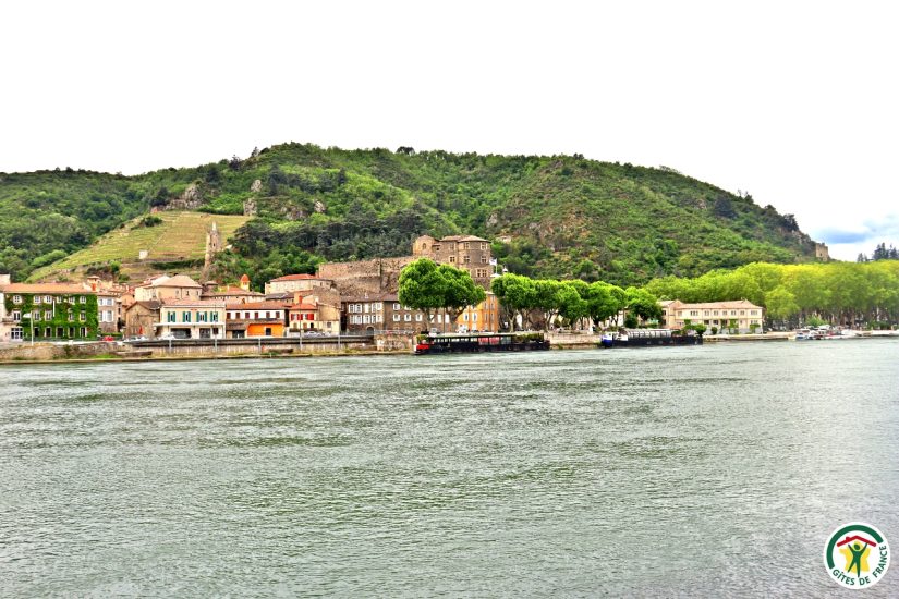Maison de charme sur les quais de Tain, avec vue imprenable sur le Rhône, le Château de Tournon et le vignoble de St Joseph; Location de vélos électriques.