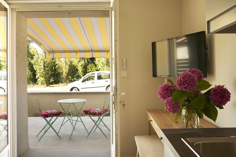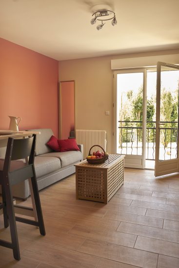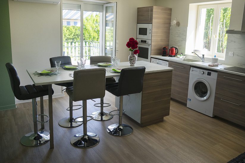 Nos studios de plain-pied sont spacieux et lumineux, à la décoration contemporaine et sobre, aménagé pour deux personnes dans un petit hameau à la campagne. Vous disposerez d’un grand séjour-cuisine ouvrant sur la terrasse, d’une salle d’eau-wc, d’un canapé convertible en lit 2 places très confortable, d’un coin bureau, d’une cuisine intégrée avec lave-vaisselle et micro-ondes, TV et Wifi.