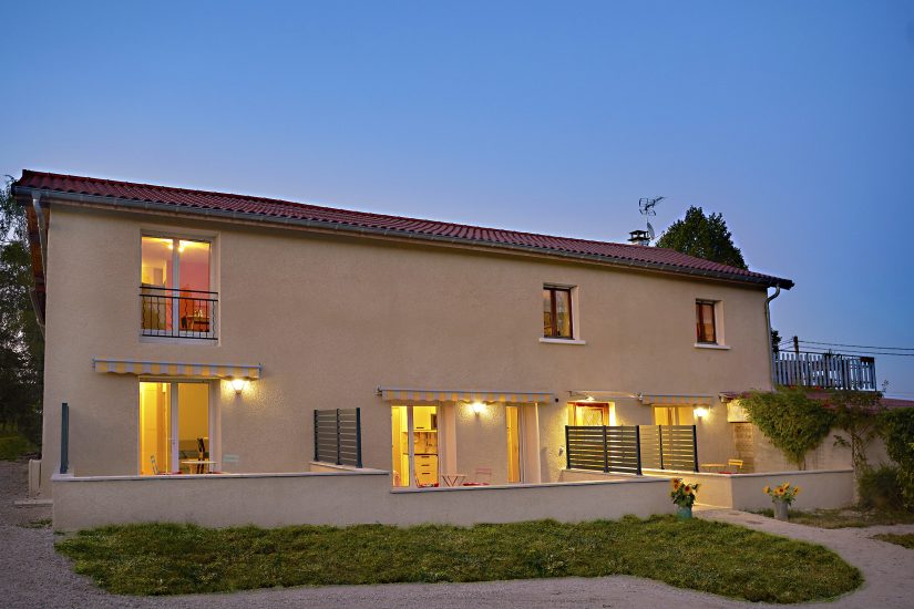 Faites une pause à Revigora Locations : 4 studios neufs (25m²) et meublés et 1 appartement (75m²) dans un ancien corps de ferme réaménagés dans un style moderne. Sur les collines de Vienne, entre ville et campagne pour 1 nuitée et jusqu'à 3 mois.