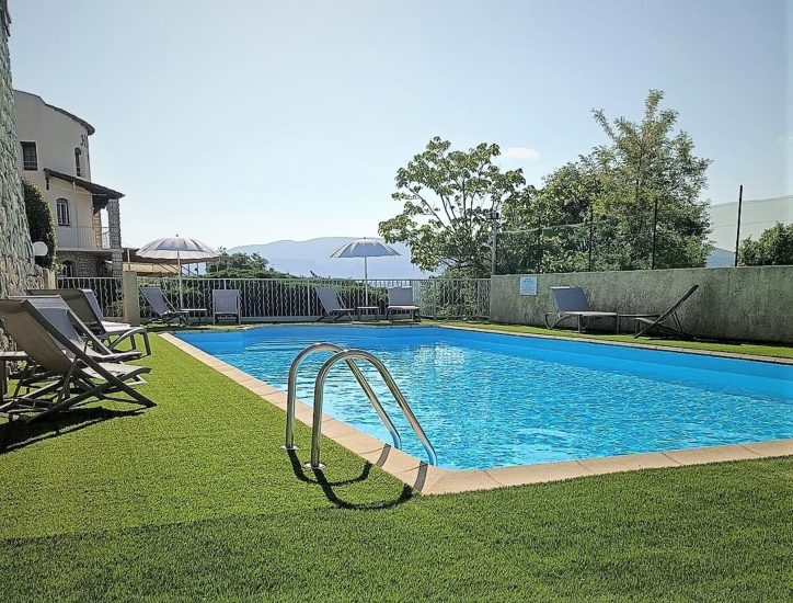 L'espace jardin avec vue et la grande piscine sont particulièrement appréciés des vacanciers.