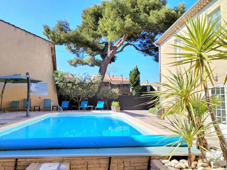 Le cœur du site : sa terrasse intérieure procure calme et repos, face à la piscine, idéal pour s’y installer en famille, en couple ou tout simplement se distraire après une journée de travail.