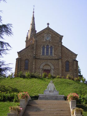 La croix rouge du clocher fut posée en 1871 et la consécration de l'église eut lieu le 18 novembre 1874. La cure qui se trouve à l'Est de l'église a été construite par la suite, avec les pierres de l'église Saint-Pierre. En effet, à l'époque, cette église était située en contrebas à l'extrémité du monument aux morts.