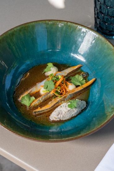 Dans ses assiettes qui racontent avec sincérité et passion le terroir, le Chef suit le rythme des saisons et met à l’honneur avec bonheur et subtilité les classiques du patrimoine culinaire français. Les volailles à la rôtissoire côtoient l’épaule d’agneau confite et la poitrine de cochon d’Ardèche grillée ; les légumes de saison rivalisent de croquants.