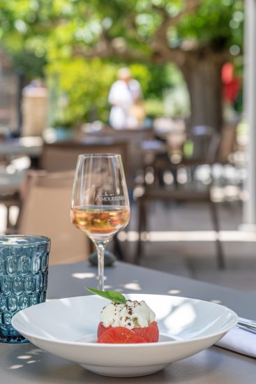 Le restaurant accueille ses clients en salle ou sur la terrasse offrant une vue sur le parc arboré de 4 hectares et la bastide du Domaine. Il est ouvert du lundi au vendredi, pour le déjeuner et le dîner, sur réservation.