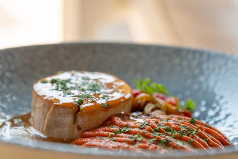 Il propose une carte élaborée à partir d’ingrédients frais issus de filières raisonnées et de producteurs régionaux. Selon les saisons, les légumes et herbes aromatiques peuvent provenir du potager du Domaine.